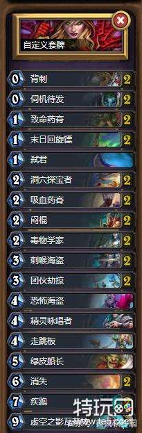 炉石传说拉斯塔哈的大乱斗海盗弑君贼卡组推荐,在拉斯塔哈的大乱斗这个版本发布之前,大家看到的盗贼新卡,很大一部分都是海盗,海盗贼无疑成了本次新版本盗贼的第一套实验卡组,那么接下来就为大家推荐两套海盗弑君贼的卡组,一套快的,一套慢的,供大家参考。