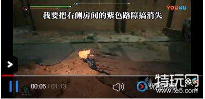 从房顶跳下去,炸开墙,想办法把蘑菇抽出去,抽到深坑里面,然后踩着蘑菇就可以过去。