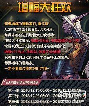 DNF2018年12月增幅活动即将上线,增幅是玩家增强战力的手段之一,增幅大狂欢活动是帮助玩家增幅的活动,大家知道12月增幅活动的时间吗?下面小编就为大家分享DNF12月增幅大狂欢活动详情,一起来看看吧。