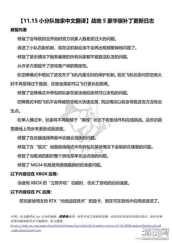 战地5豪华版11月15日更新内容介绍就到这里,希望对玩家有所帮助。