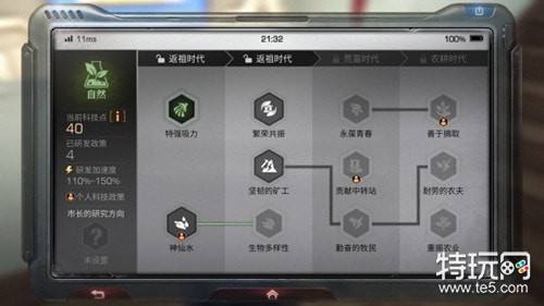 市民可以通过种植,使用个人功能家具或领取福利箱等营地日常行为获得科技点数,科技点以用于各项技能的研发。