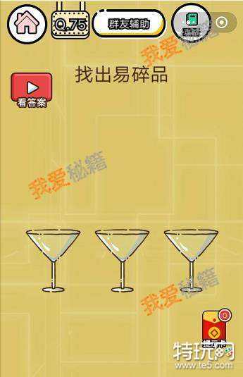 微信小程序游戏智力达人你们喜欢玩吗?其中第75关有三个高脚杯,让我们找出易碎品,这几个不都是易碎品吗?杯子不都是易碎品吗?同时点击为什么不正确呢?感兴趣的小伙伴们就来看正确答案吧!
