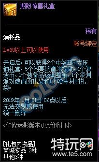 活动期间,每天可以领取一次[期盼惊喜礼盒],开启礼盒后获得的[哈林材料礼袋]可在2019年1月21日维护后开启