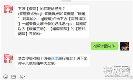 (答案格式为qj+答案哦,例如答案是“暖暖”,则需输入:qj暖暖)
