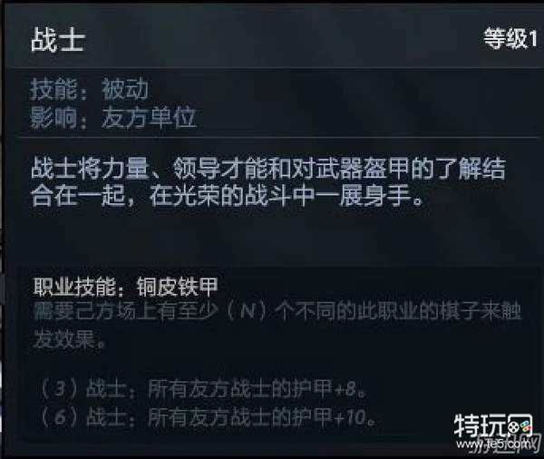 先解释一个误区:如上图所示,3战士在场上的buff为友方战士+8甲,6战士在场上的buff为友方战士+10甲,但这两个的buff是叠加的,意味着如果你场上有6只不同的战士在场上的话,所有场上友方战士+18甲哦。
