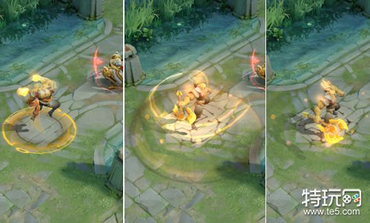 盘古斧:在跳跃期间盘古可以再次使用狂怒突袭选中一名敌人,落地后盘古会立刻冲向选中的敌人并将其击退造成物理伤害并自己停下,同时在3秒内增加攻击速度