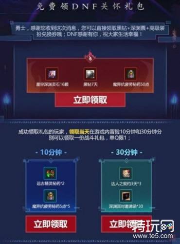 DNF关怀礼包感谢有你还不知道?点我地址立即领取吧