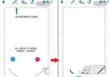 画一条线条或者圆圈,让两个小球碰撞在一起,让它们相遇“相爱”。