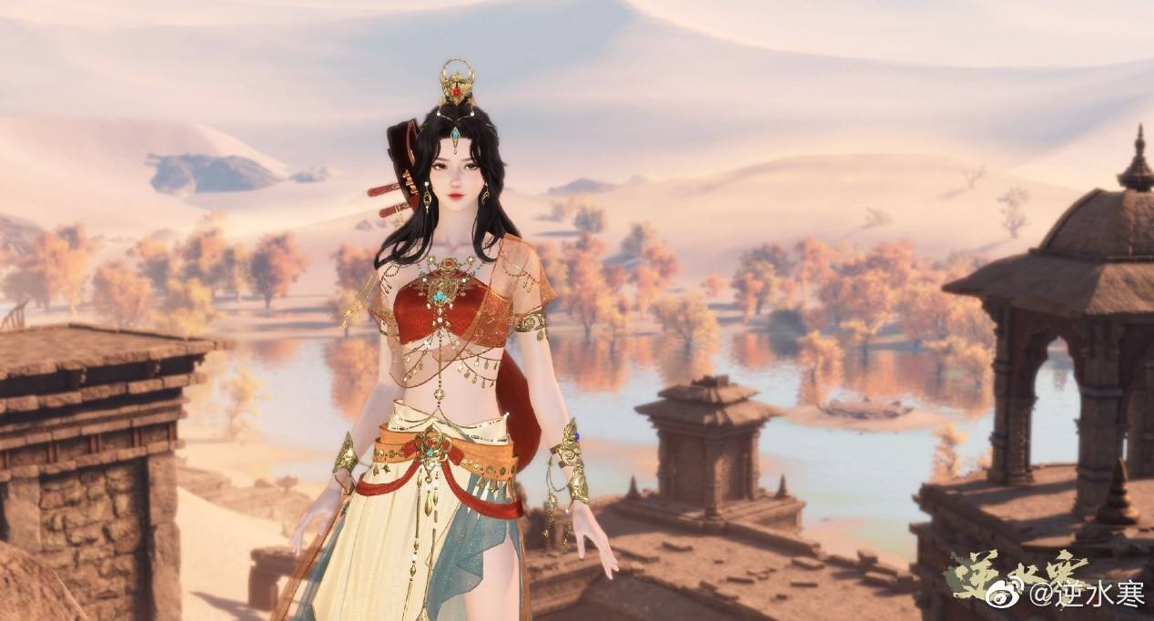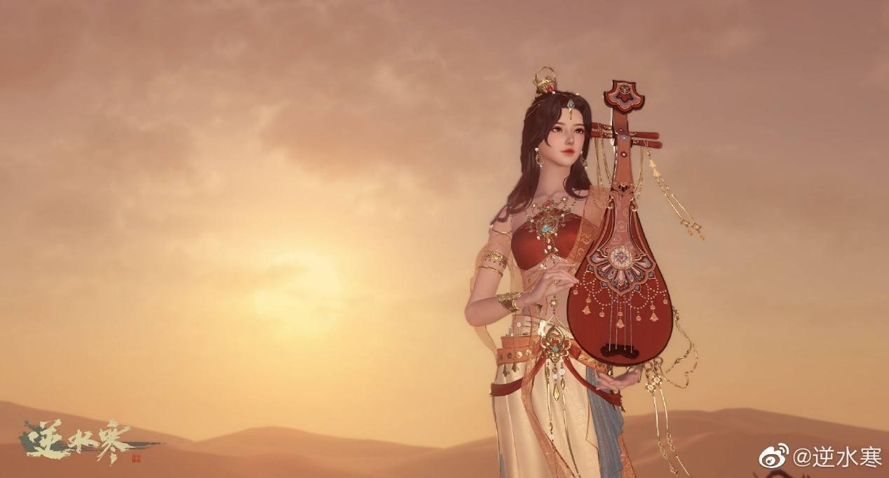 而从新发布鸿音物料图来看,《逆水寒》美工首次抛弃古风宽袍大袖设计理念,大胆尝试西域性感风格,力求性感爆炸。