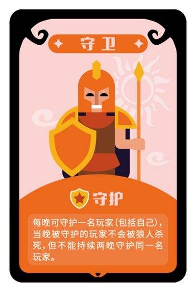 守卫是一个比较特殊的角色,对玩家的水平要求极高,一个水平高的守卫玩家注定抿狼刀水平不差,通过在夜间与狼人逻辑对碰,实现多个平安夜可以直接让狼人崩溃。守卫守人的次序选择很重要,通常预言家、女巫是守卫守护的重点对象,守卫可以通过自守、空守来为自己下一轮守护做调整。守卫要注意女巫用药的选择,避免与女巫出现技能冲突导致失效。