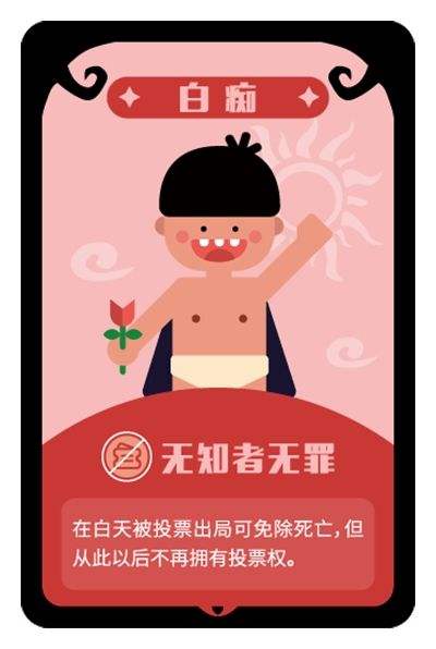 白痴的玩法比较简单,那就是全程按照民牌来玩,遇到刀神局利用民的身份躲避狼刀,遇到刀民局,可以吸引狼人刀自己从而为民挡刀。