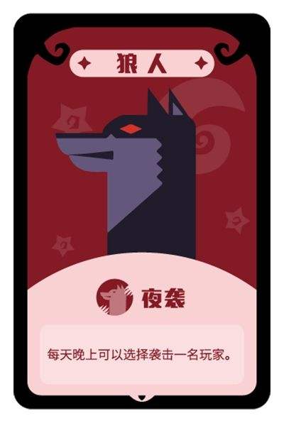 狼人是狼人阵营中最为普通的角色,他们夜间具备袭击任意一名玩家。狼人常见的玩法有悍跳狼、倒钩狼、深水狼以及冲锋狼。狼人的玩法是最为多样化的,我们必须明白狼人是必须安排悍跳预言家的,否则预言家拿到警徽坐实身份,剩下也就没狼人什么事情了。