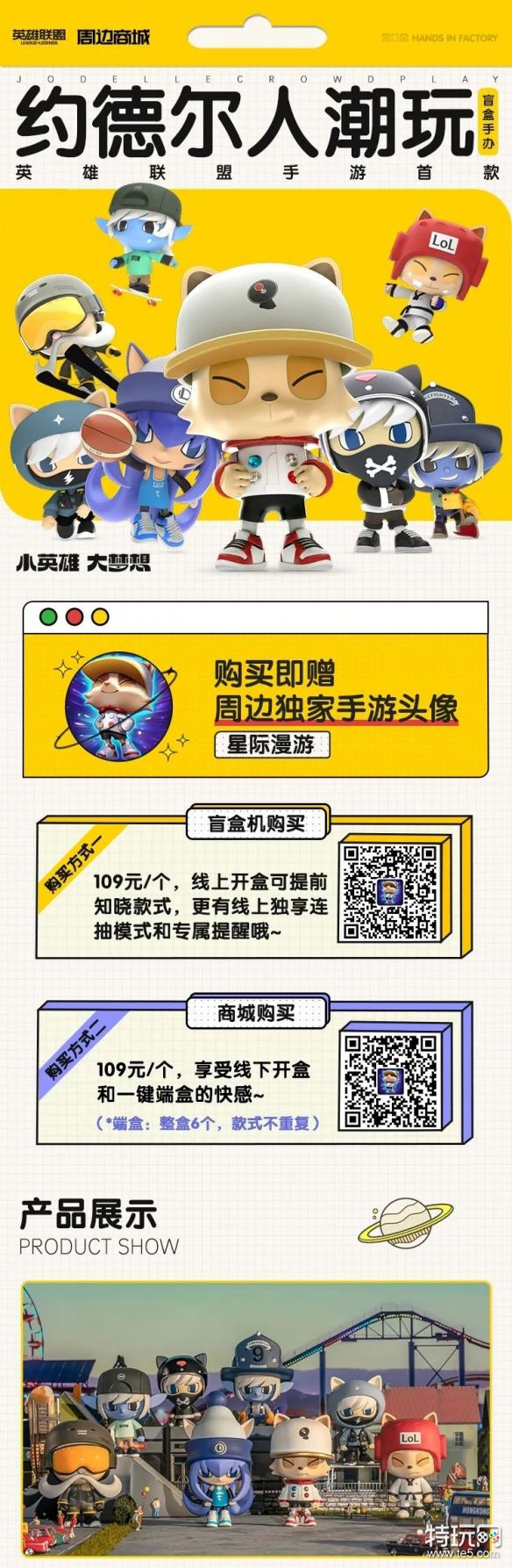 英雄联盟携手HIF出品打造手游首套约德尔人潮玩手办,产品首次以游戏内约德尔人英雄形象进行潮玩方向的二次创作。