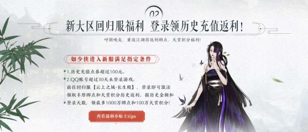 呼朋唤友,相会天涯——绑定好友领好礼,邀请好友共闯天涯,丰厚新区奖励,完成任务即可领取云城专属好礼!海量成长道具助力少侠闯荡天涯!