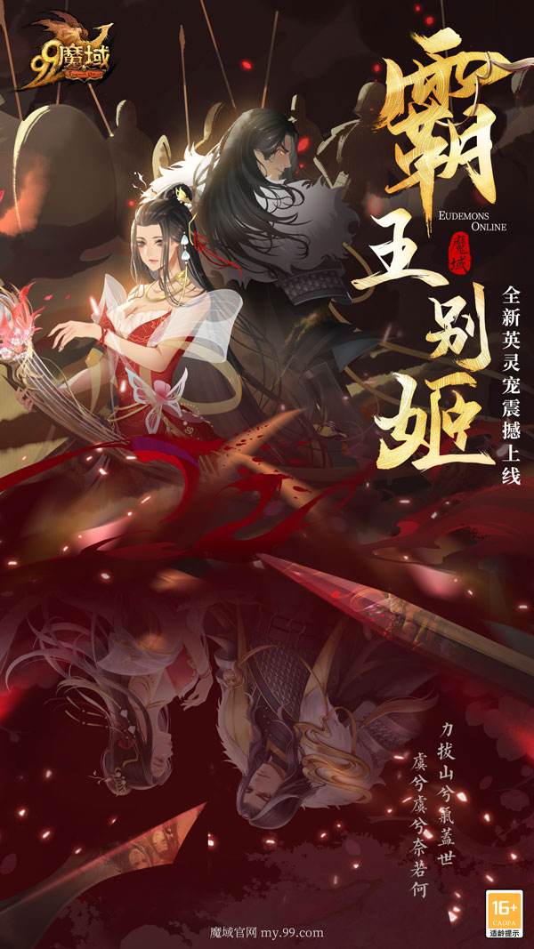 剑胆豪情,霸王归来破山河;琴心雅致,虞姬蹁跹踏楚歌!《魔域》全新英灵宠楚霸王、虞美人以及合璧成为一只组合宠的誓同心·霸王虞姬幻兽,7月10日正式上线——穿梭时空,千世流转,楚霸王、虞美人再度相遇!这一次,不再有垓下的诀别,霸王虞姬再续前缘开启全新征程,故事的圆满结局由你亲手书写!