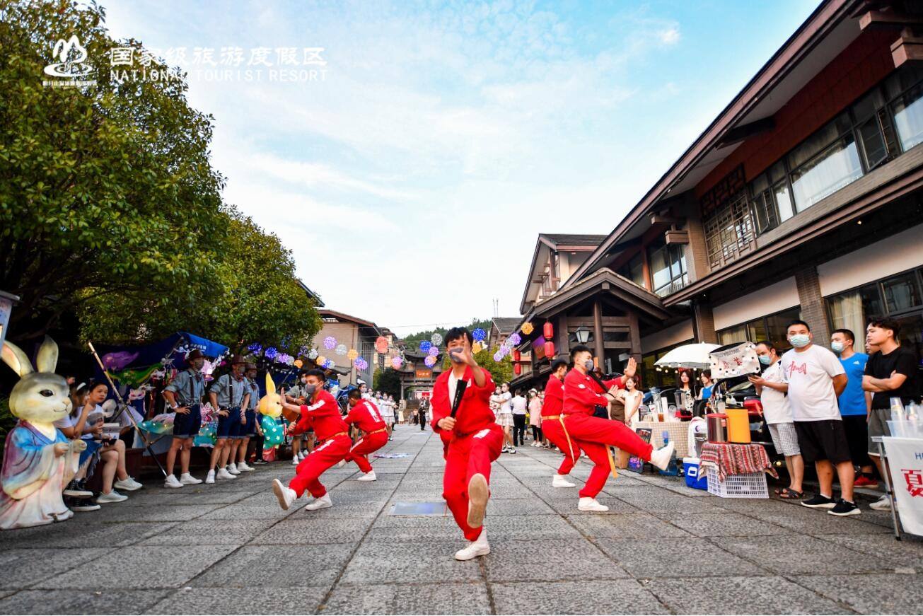 当王者荣耀的角色穿越次元的桎梏走进现实,来自全国各地的专业Coser气场全开,装扮成王者荣耀中的经典角色在街头巡游,吸引来往游客驻足,来自明月千古情的舞蹈演员载歌载舞带来快闪表演,共同成为古井泉街靓丽的风景线。