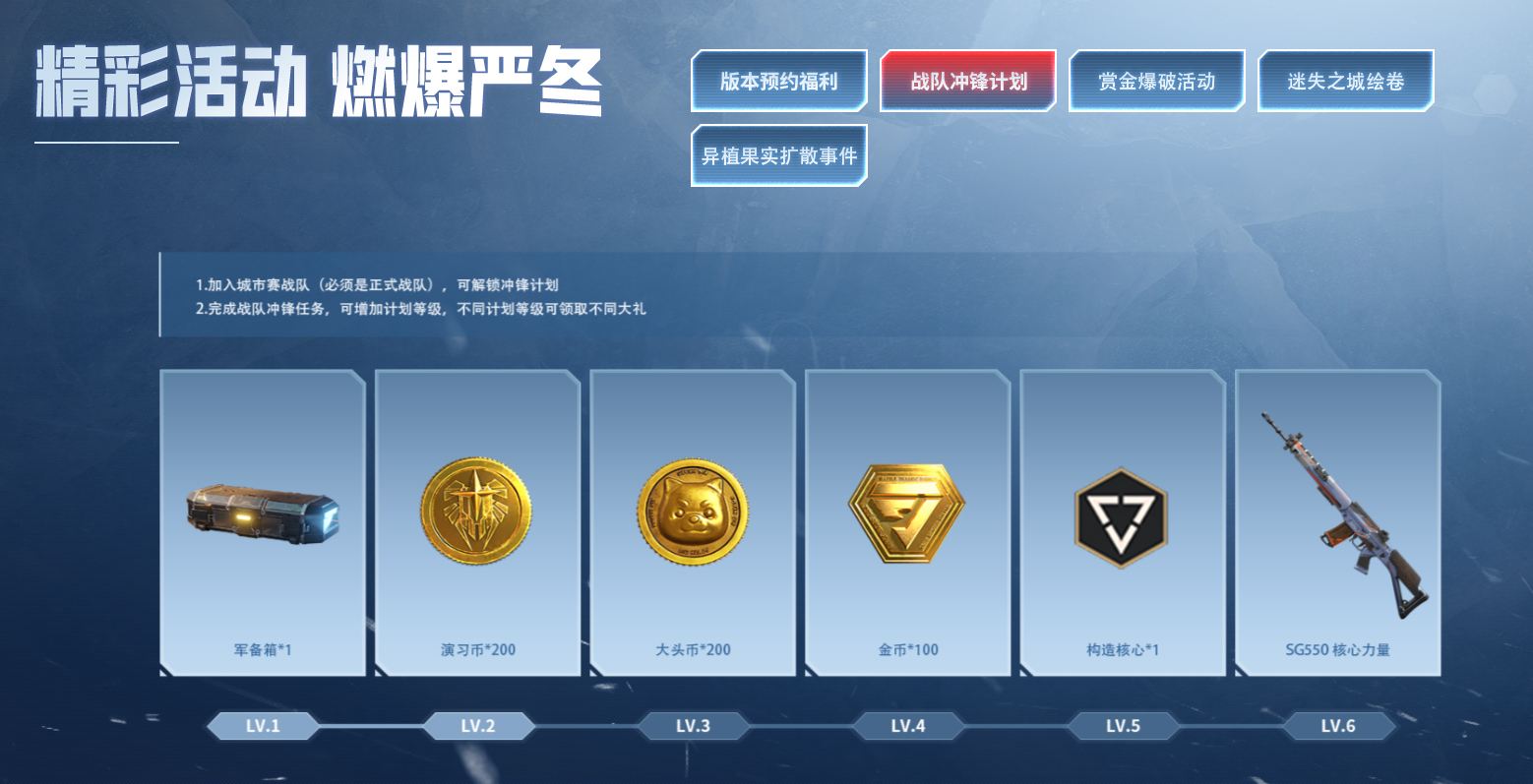 全新赛季征程再启,作战冲锋赢好礼!11月24日至12月18日S3赛季期间,每日登录游戏即得一级战斗手册。玩家可结算S2赛季奖励并继承一定程度的天梯段位,参与S3荣耀天梯与墨金挑战活动,达到指定段位并累计战斗场次领取赛季奖励。同时,加入城市赛正式战队解锁冲锋计划,完成战队冲锋任务,能增加计划等级领取相应的等级礼包。S3赛季还将新增赏金爆破模式与地图「霓幻山城-白昼」,带来强竞技性的游戏体验。