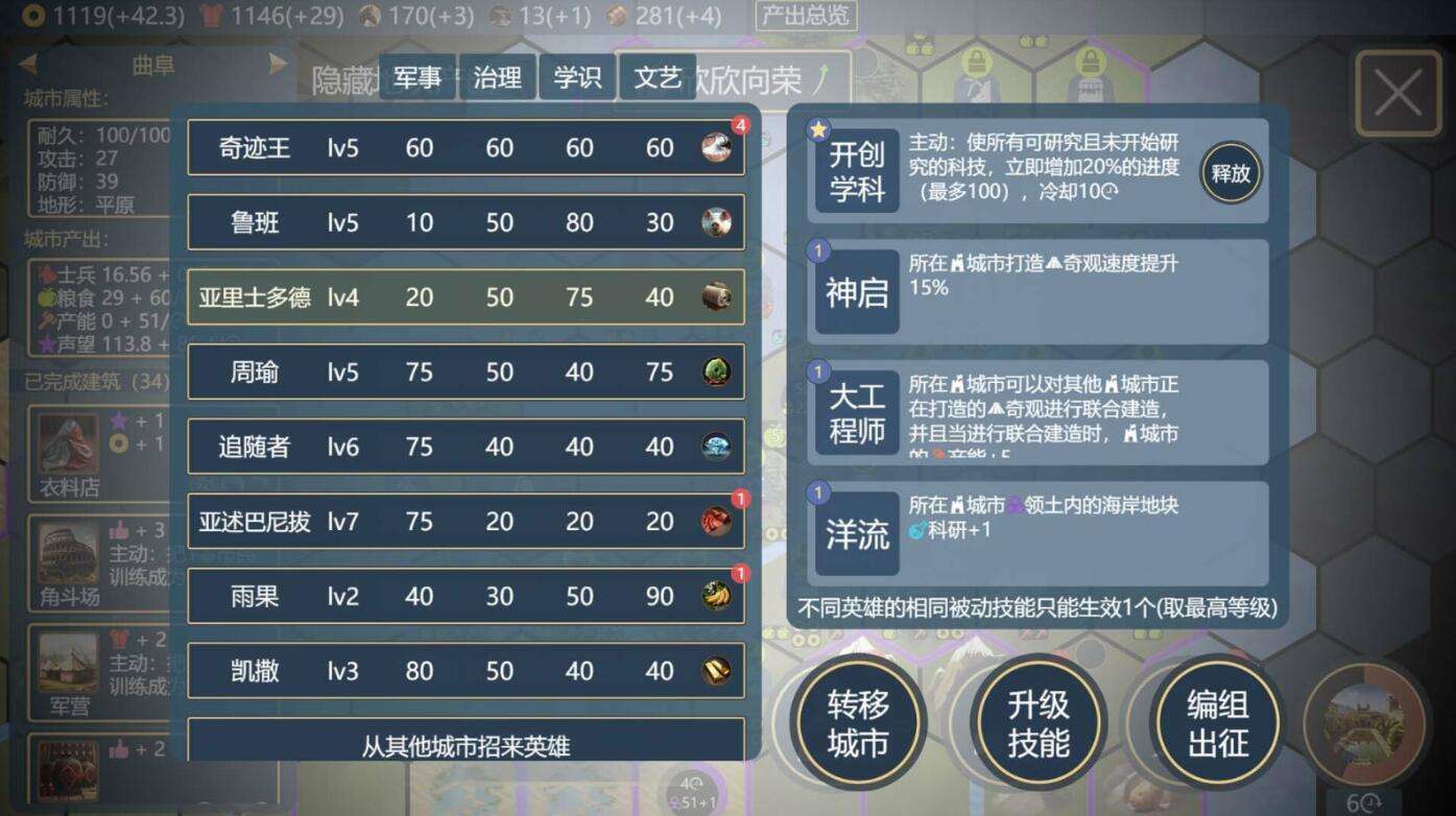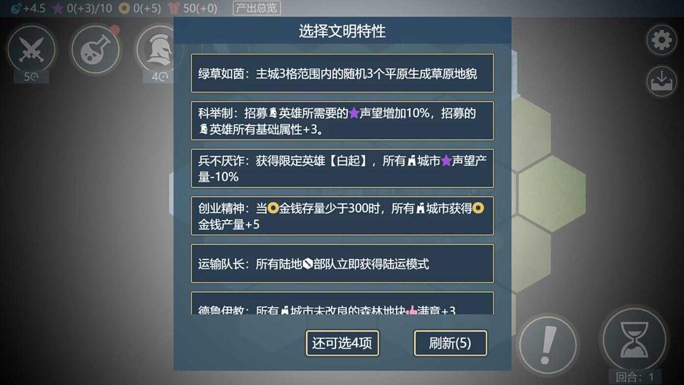 独创的英雄体系是《文明守护者》的一大亮点。玩家可以招募历史上的伟人,这些英雄不仅能够在军事上发挥重要作用,还能对经济、科技、文化等方面产生更大的影响。通过合理运用英雄,玩家能够在游戏中取得战略上的重要优势,使每局游戏都充满变数。