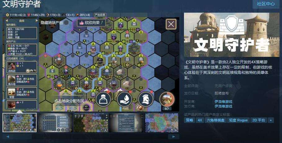 《文明守护者》是一款由2人独立开发的4X策略游戏,虽然在美术效果上存在一定的限制,但游戏的核心体验在于其深刻的文明延续视角和独特的英雄体系。