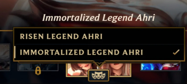 Faker的【殿堂传奇 阿狸】【联盟不朽 阿狸】两款皮肤在选人界面将类似于萨勒芬妮终极皮肤的形式,玩家可以自由选择使用哪款皮肤。
