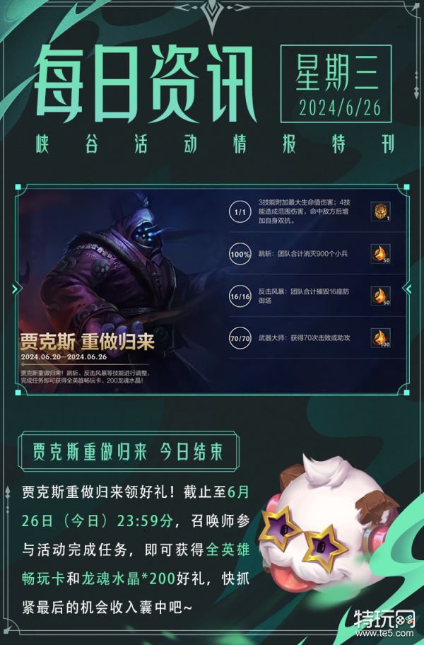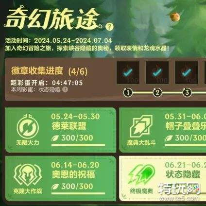 加入奇幻冒险之旅,探索峡谷隐藏的奥秘!奇幻旅途第五站将于6月27日(明日)23:59分结束,截止至7月4日,召唤师完成任务积攒能量,收集徽章,即可领取局内表情-哦耶!和龙魂水晶*2800好礼~