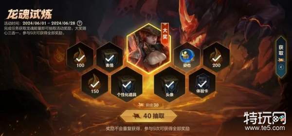 6月龙魂试炼进入倒计时~截止至6月28日23:59分,召唤师完成任务,获取龙魂能量抽取奖励,即可实现女帝 厄运小姐、龙魂水晶*3000和专属大奖随心三选一!