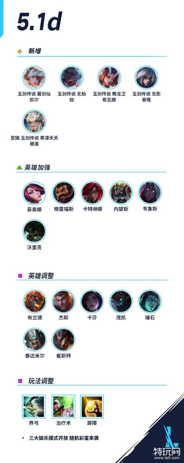 以上就是5.1d版本更新的全部内容啦~除此之外,召唤师们也不要忘记本周四(明日)上午10点即将发布的开发者日志,感谢召唤师的关注与支持,我们峡谷见!