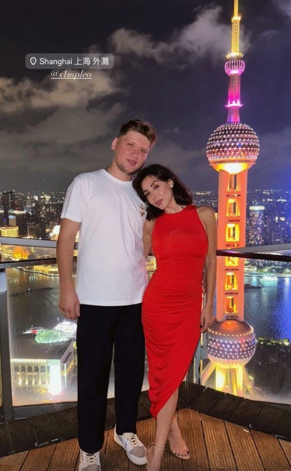 日前s1mple女友Melissa在社交平台上发布了两张她和s1mple的合照,定位均为中国上海。其中一张是他们二人打卡上海地标建筑物东方明珠的照片。