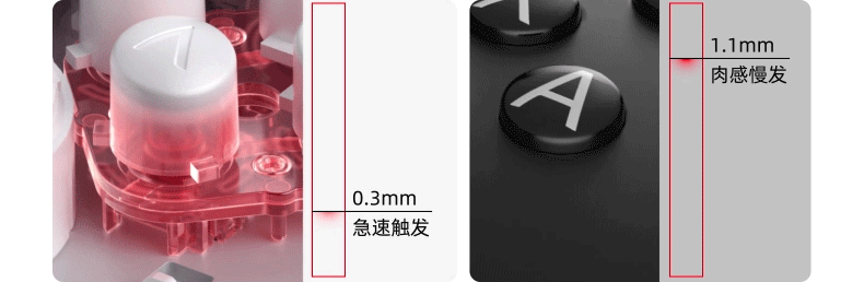 切换微动,轻按手感和鼠标一样干脆,玩需要快速反应的游戏,开枪、释放技能都爽感十足。