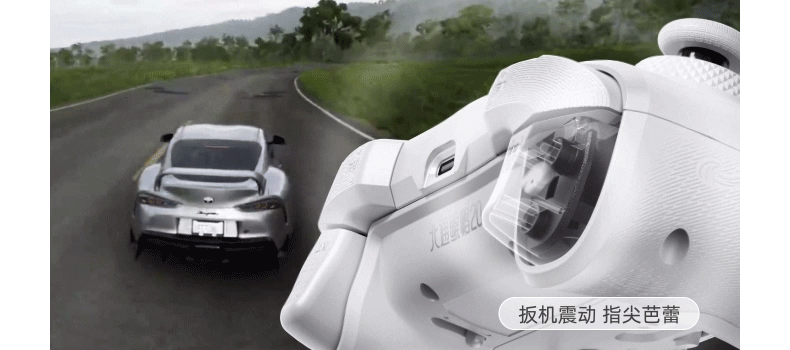 新增扳机马达,支持扳机震动,让手柄可以模拟出车胎颠簸等场景的多层次细腻震感。