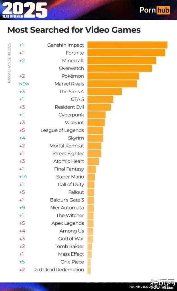 与之相对,玩家们回应开发组的是无与伦比的热情。举个不恰当又有点恰当的例子,正好某Porn公开了2025年的搜索排行榜,《漫威争锋》因其优秀的美术和角色设计成为了榜上新晋第六名。