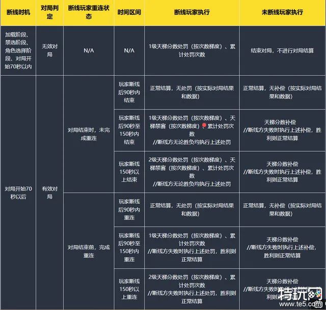 对于无效对局断线的玩家,游戏将按累计次数执行1级天梯分数处罚,并累计处罚次数。而对于有效对局断线的玩家,则会根据玩家是否完成重连以及对局结算结果,基于玩家严重程度不等的处罚。