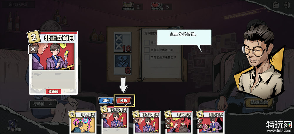 Q:游戏中有“询问”(击破防御)和“分析”(猜符号)两种获取陈述的方式。设计这两种路径是出于怎样的考虑?它们分别代表了推理中的哪种思维?