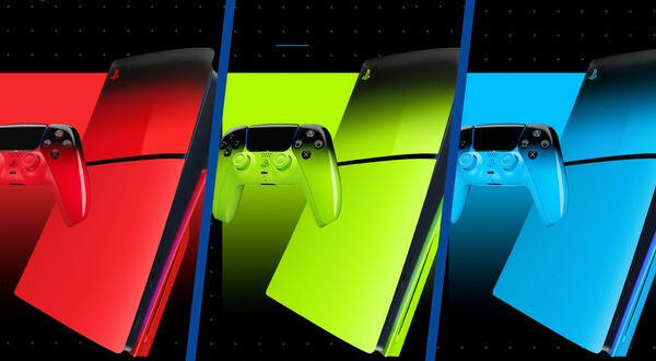 索尼为PS5主机和手柄推出全新配色系列,名为Hyperpop Collection。视频展示了三种新颜色:Techno Red、Remix Green和Rhythm Blue。这些颜色采用鲜艳的霓虹色调,顶部渐变为黑色,外观时尚亮眼,并且表面有光泽。