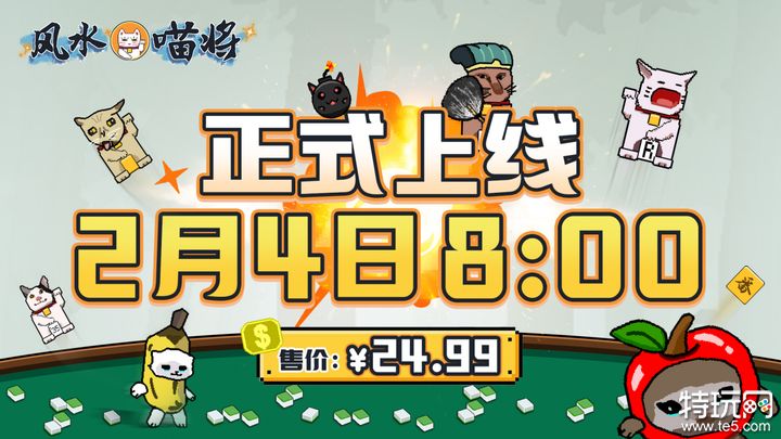 《风水喵将》将于2月4日正式上线Steam,标准发售价24.99元,即刻参与活动添加愿望单,让我们和你新年一起发发发!