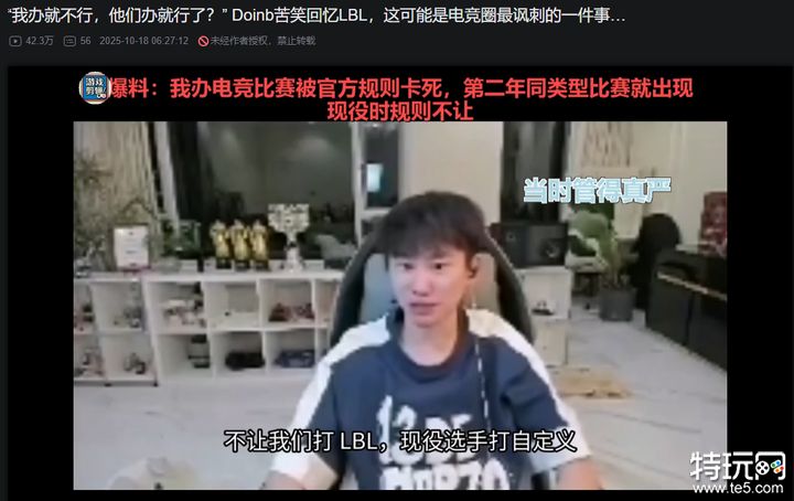 作为LBL(LOL现役选手打自定义)的创始人,Doinb曾用一己之力将民间娱乐对局推向了高潮。LBL巅峰时期,职业选手与主播组队混战、约战现役职业队(JDG全队)成为了常态,单场直播热度破千万。然而,这场“草根狂欢”最终因触及官方利益被叫停,本该属于Doinb的流量被收编为LPL官方赛事“老头杯”。官方的这一表现与V社完全相反,V社本质就在鼓励打社区DOTA,巴不得有越来越多的社区比赛出现,国内直播平台联合主播举办的“宝可梦”、“凯西杯”、“老头杯”等社区赛事也办的相当优秀。