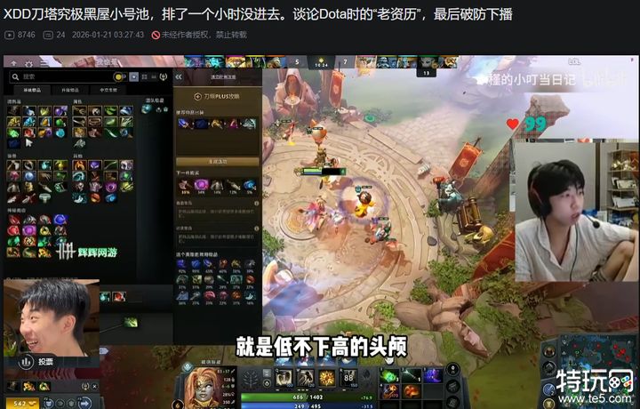 另外FPS头部主播XDD最近也沉迷DOTA2,他早在2022年就直播游玩过DOTA2,并和Maybe、皮鞋等人组排。他在TICU当天也组了DOTA2五黑,却因分段差距过大陷入“排队地狱”——五人黑店硬是等了1小时才匹配到对手,期间一直观看Doinb与黄旭东之间的对局。等待期间,XDD开始吹自己是DOTA“老资历”,早在上学期间就玩DOTA,不屑去玩英雄联盟,“低不下高傲的头颅”。