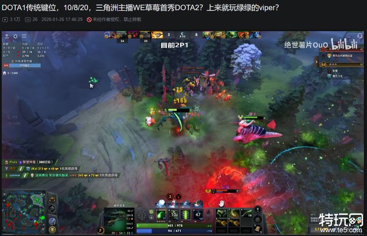 除了这些职业选手外,现在人气斗鱼主播洞主也加入直播了DOTA2,不过洞主每年都会固定节目播几把DOTA2,属于是老玩家了,并且他早年还是玩DOTA1的。而另一位曾经WE战队的人气选手草莓,在转型三角洲主播之后也于近期手痒直播刀了一把,并且还使用的是DOTA1传统键位,暴露了自己老玩家的身份。