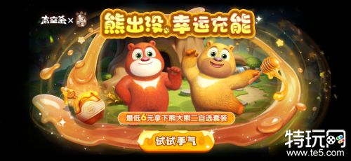 熊出没主题夺宝限时开启,最低6元解锁熊大熊二自选套装,立刻前往游戏试试手气,获取你的联动专属套装!