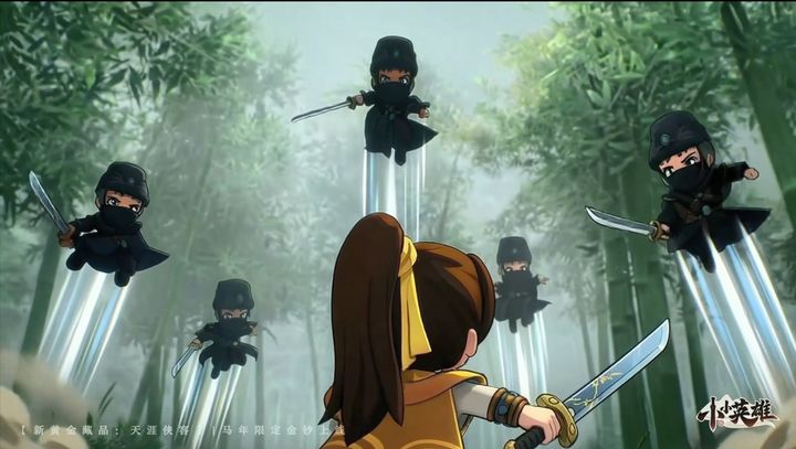 以《小小英雄》的单篇视频为例,野鸦竹林搭配萧瑟风声,一股浓烈的“江湖气”便扑面而来。在AI算力的加持下,原本平面的Q版侠客仿佛被注入了灵魂,于方寸之间演绎出了一场行云流水的武侠大片。