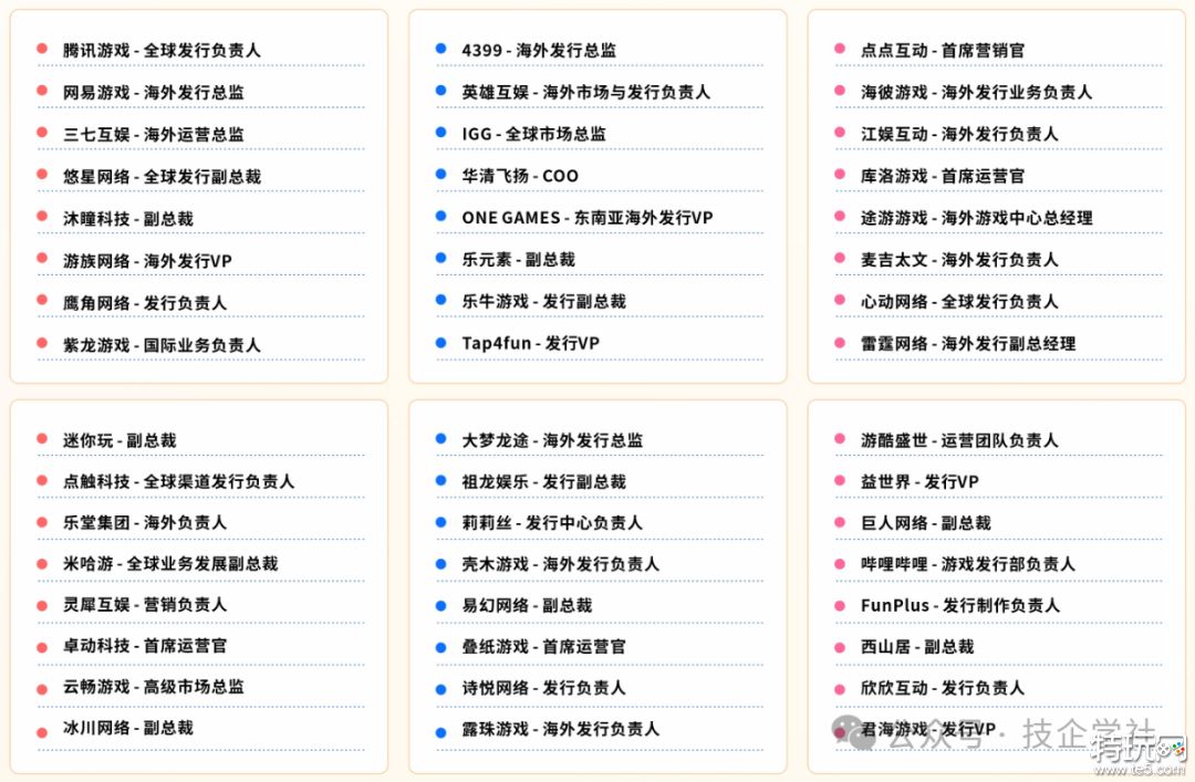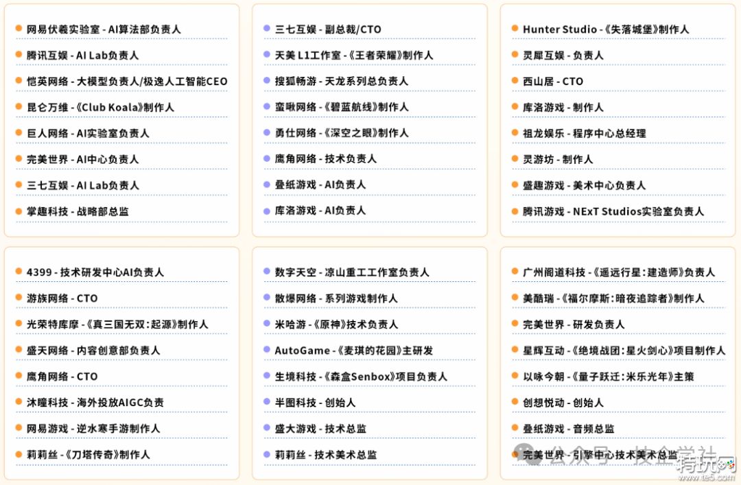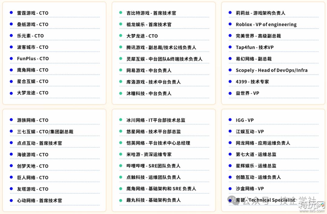 35+分享嘉宾来自全球头部游戏公司及领先技术企业,均为关键业务的一线首席专家,经过大型项目验证的实战经验、架构设计与增长模型,确保每一个洞察都具备高度的可操作性与借鉴价值。