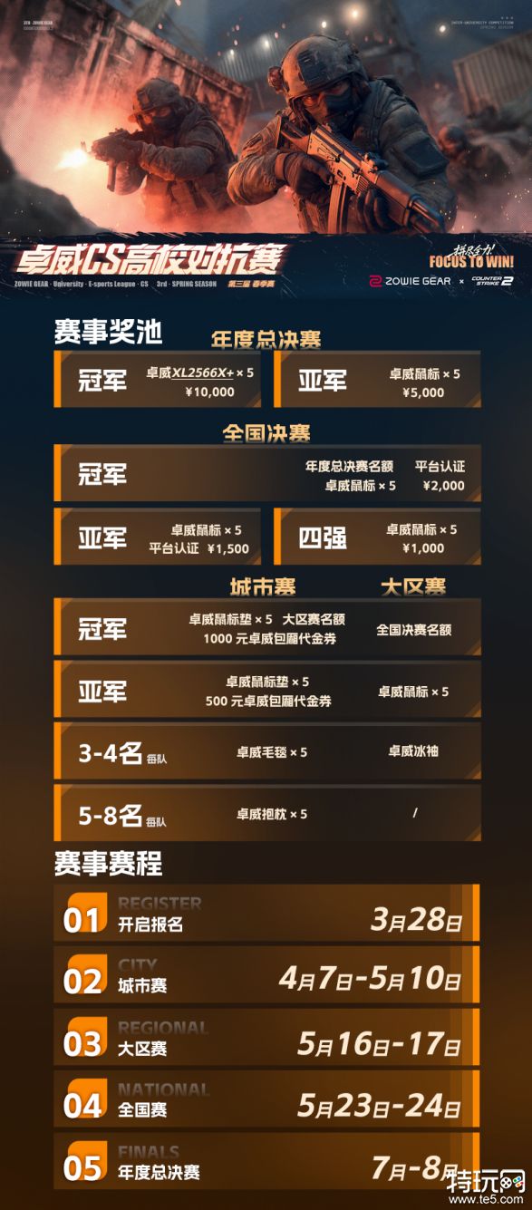 更完整的晋级通路、更丰厚的赛事奖励、更专业的竞技舞台——3月28日,第三届卓威CS高校对抗赛-春季赛正式开始报名!