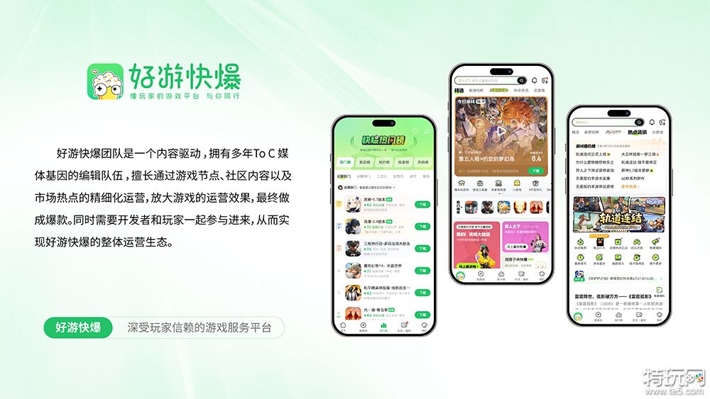 好游快爆隶属于厦门纯游互动科技有限公司,是一家以游戏内容驱动的手游推荐与交流平台。作为国内主流且极具影响力的游戏社区之一,我们致力于成为连接广大开发者与亿万游戏爱好者的坚实桥梁。平台以“懂玩家的游戏平台”为核心理念,汇聚了超过8000万热爱游戏的玩家与超过1万名游戏开发者。在这里,我们不仅是精品游戏的集合地,更是一个集新游内测爆料、深度游戏工具、高品质社区交互于一体的综合性服务平台。平台致力于提供最新的游戏爆料、体验服提醒及海量精品游戏的抢先试玩,让玩家走在潮流前端。同时打破传统分发模式,鼓励玩家与开发者直接沟通反馈,助力游戏调优,共同打磨精品。好游快爆拥有专业的游戏攻略、热门游戏辅助工具,还通过“新品节”等活动挖掘并扶持优质中小游戏。