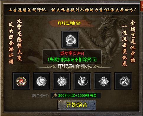 集齐六种,去安全区上方“印记融合”NPC那儿,消耗元宝和书页,50%成功率赌一把。成了,那就是本服毕业神装之一,走哪儿都有人喊“大佬”;败了,印记消失但钱退你。搏不搏?反正我觉得值得一试。毕竟,这年头能让你“赌输了也不亏”的设计,不多了。