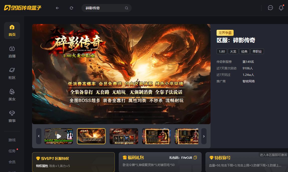 现在下载996传奇盒子,搜索“碎影传奇”。一个人,一把刀,一个服,照样能杀出属于你的传奇。三端互通,云挂机加持,登录即领“996传奇大神”称号与每日福利,剩下的路,就看你一刀一刀怎么砍了!