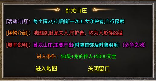 卧龙山庄:攻速和时装的唯一来源,不去就亏