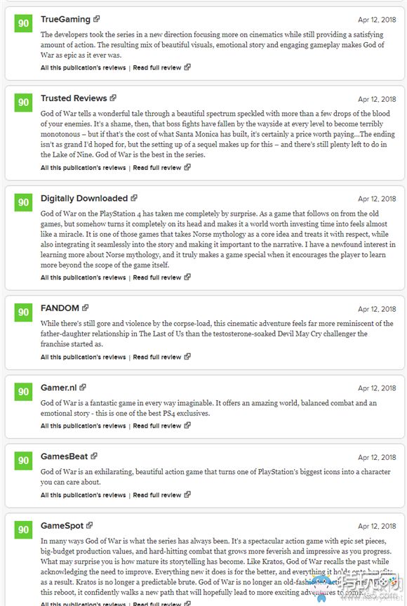 IGN、Polygon等多家媒体为本作给出了10分满分的评价,其中IGN认为,《战神》以出色的角色塑造、世界观和战斗系统,带来了一场难忘的精彩冒险。