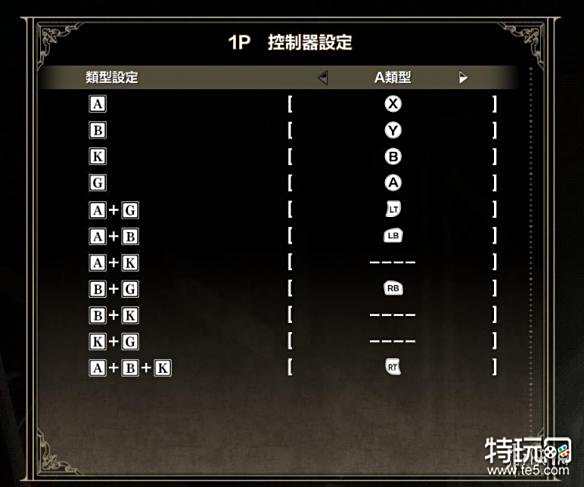 招式 对应按键(A类型) A X B Y K B G A A+G LT A+B LB B+G RB A+B+K RT