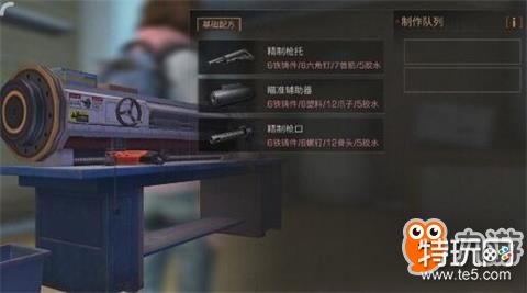 当前,玩家是不可以在家园制作枪械配件的,只能前往营地或快乐101的武器店。注意,进入武器店后,直奔枪械打造台即可。此时,系统将自动弹出制作页面,进入后我们可看到:精致枪托、瞄准辅助器、精致枪口三款配件,效果如下:
