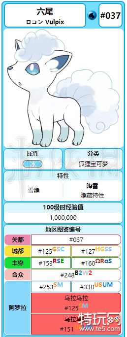 阿罗拉地区的六尾从口中呼出零下50度的气,能够将所有东西冻结。由于讨厌热的地方,气温高的时候会从尾巴形成冰来降低周围的气温。作为冰属性宝可梦,阿罗拉地区的六尾不能学会任何火属性招式,取而代之的是大量的冰属性招式。